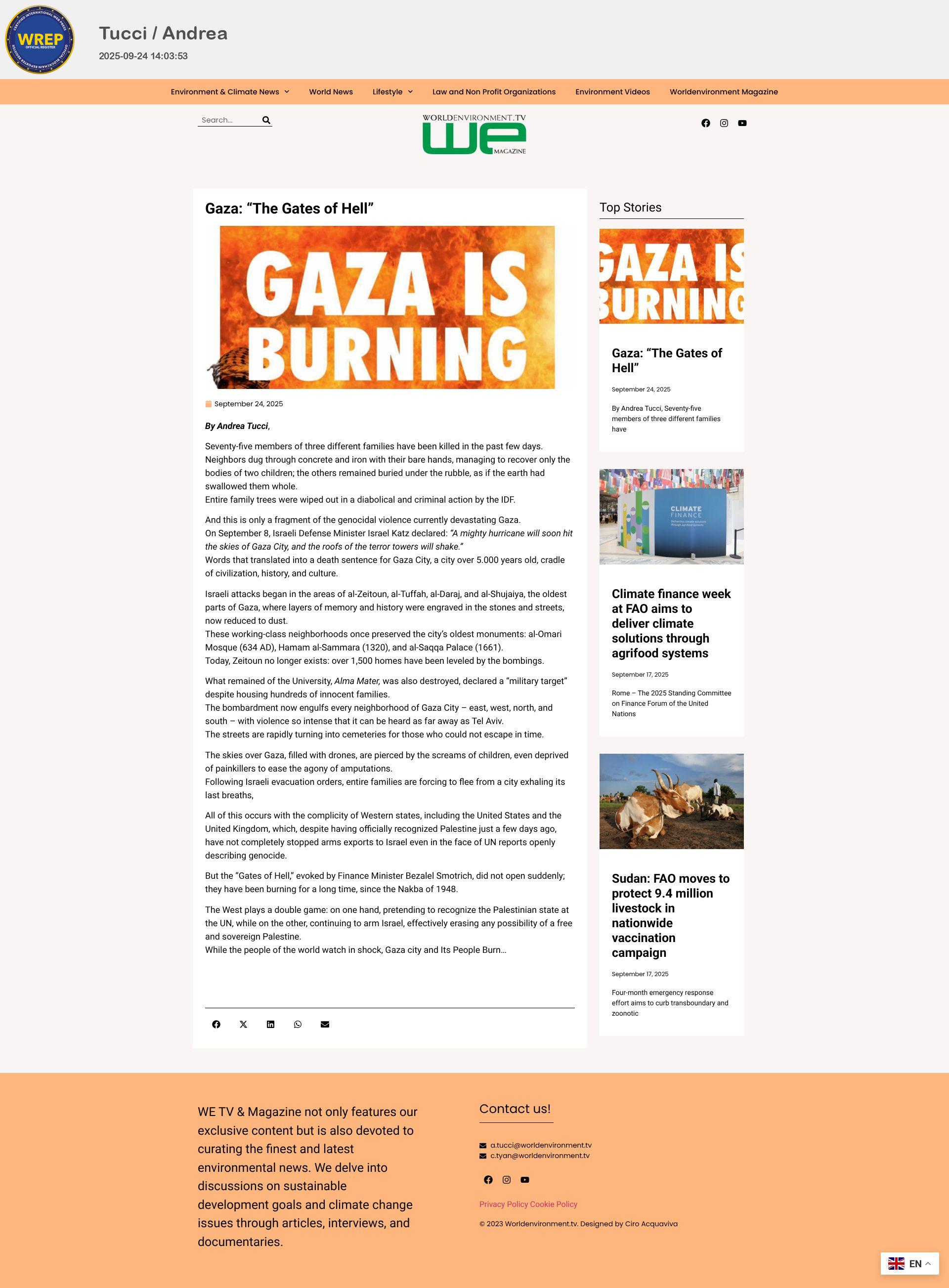 https://www.worldenvironment.tv/gaza-the-gates-of-hell/?fbclid=IwY2xjawNAvV9leHRuA2FlbQIxMABicmlkETBFbnd5dHpaZTZZbnQ3QjNuAR70j3RU6BcYJLx8sJqlnZMg-hd2YV0ynAz3yZZnLAEXjjMcBlY7jcyyQY4idw_aem_IkwnKZ09DNc36PNvEw9vow